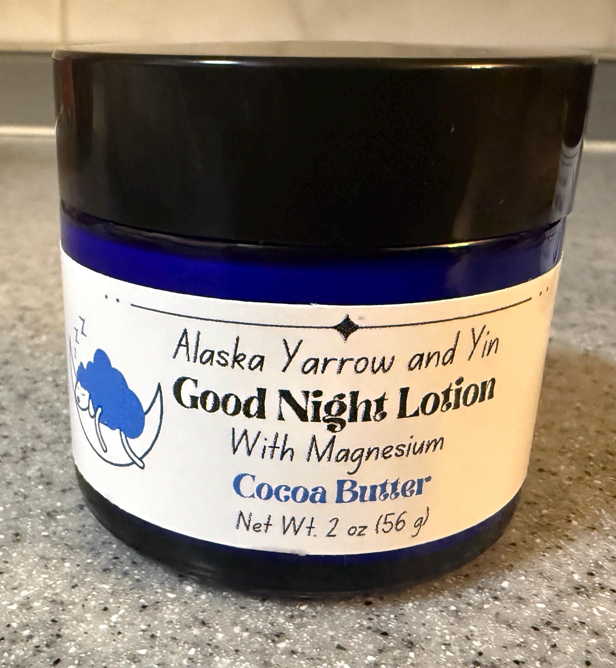 Good Night lotion is a magnesium-infused Tallow Balm, perfect for your nighttime routine or during the day when you simply need to ease your body and mind away from daily stress. Scented with Lavender and hints of coconut, this dreamy combination will leave your senses in a serene state of calm all while deeply hydrating your skin. Available in a 2 oz size only.