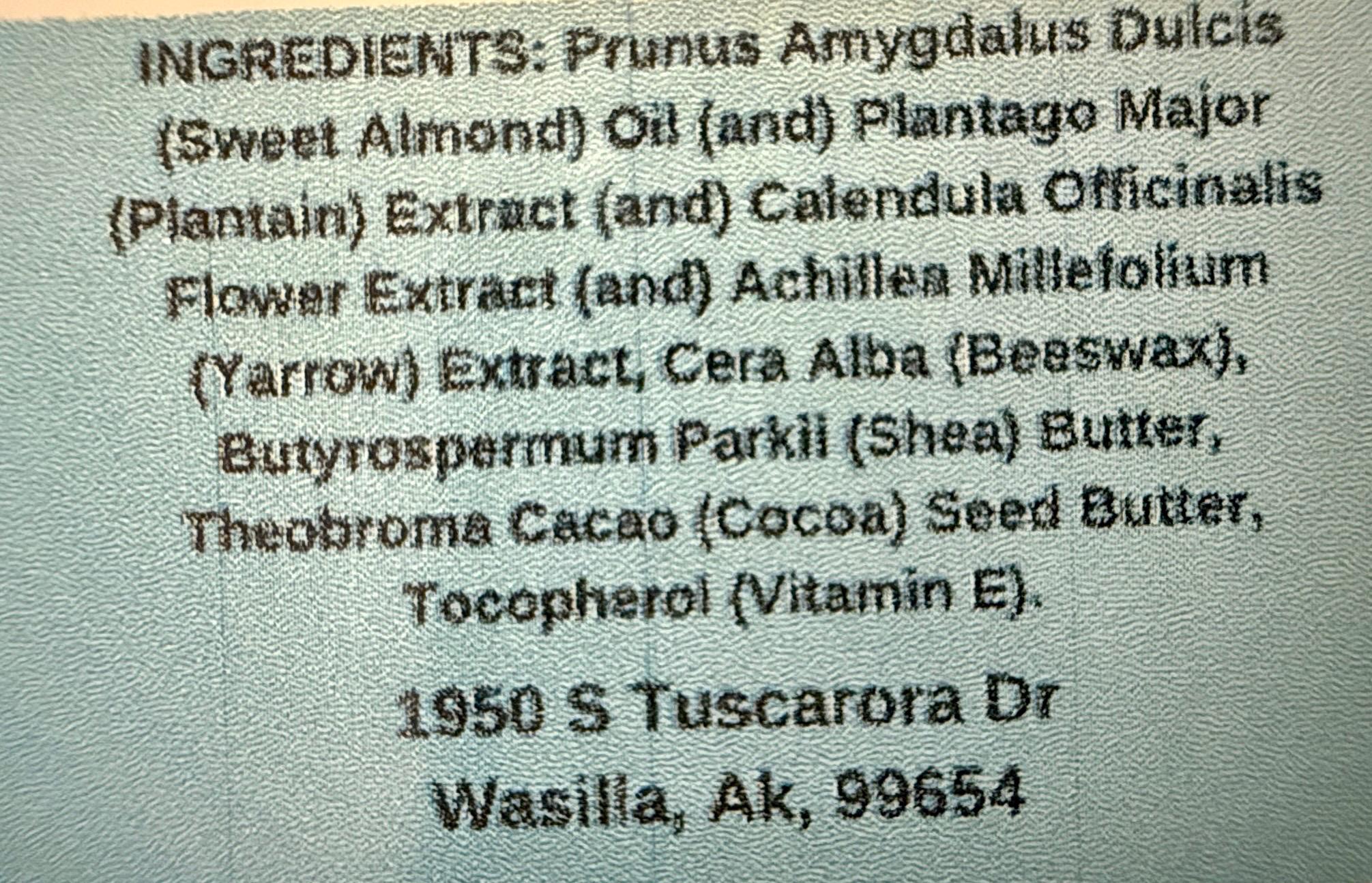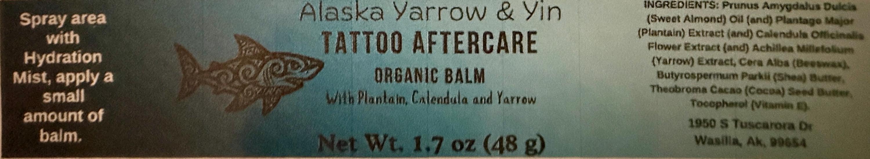 Botanical Tattoo Balm – A rich, conditioning blend of plantain, calendula, and yarrow with shea butter and organic beeswax from our hives right here in Alaska to soften skin and help maintain moisture.